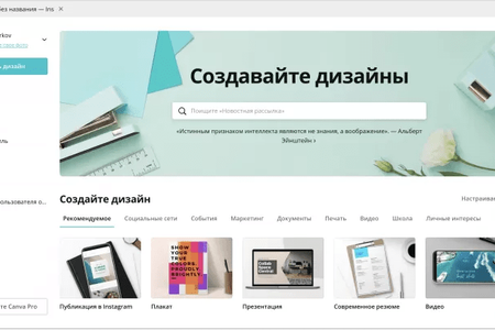 Canva - интуитивный кроссплатформенный редактор графического дизайна и видео для создания презентаций, открыток, картинок для социальных сетей и коротких роликов и анимации. Canva работает по принципу конструктора, в котором новое изображение можно получить на основе редактируемых шаблонов или собрав из отдельных элементов. Для работы в программе требуется бесплатная регистрация.