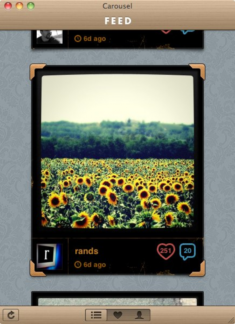 Carousel Приложение для Mac, позволяющее просматривать свои каналы в Instagram. Для того, чтобы пользоваться данным приложением, у вас должен быть аккаунт в Instagram. Регистрационные данные от Instagram потребуются вам для входа в данное приложение.