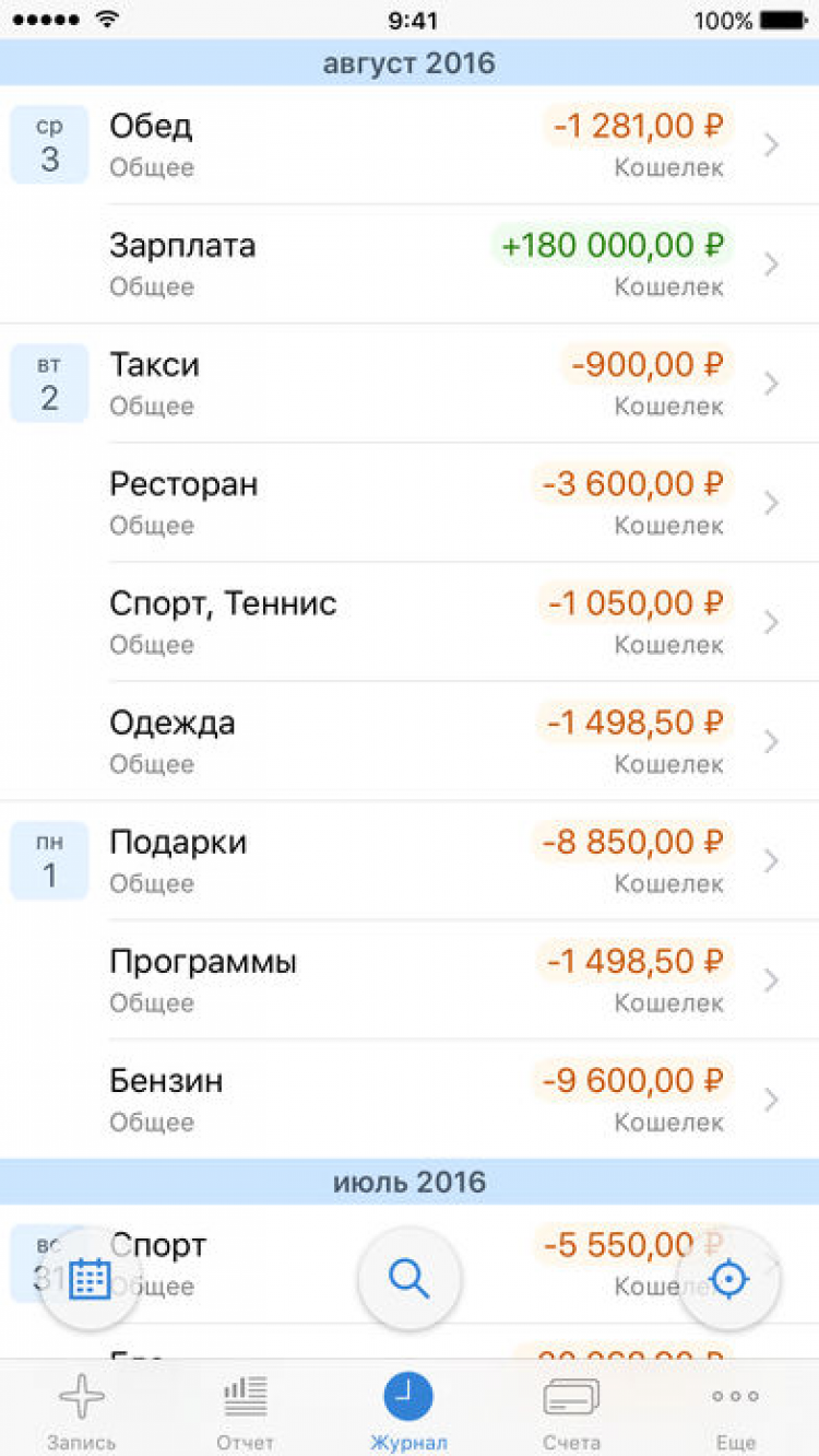 - Группы для разделения Ваших обычных расходов от деловых и туристических поездок.