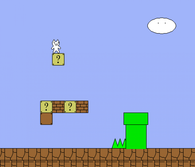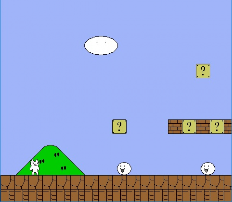 Само оформление игры и её игровой процесс окажется очень знакомым всем тем, кто играл в Super Mario Bros, либо хотя бы видел её. Главным отличием окажется персонаж. Вам предстоит играть белым котиком. Противники также выглядят несколько иначе. Кроме того, в отличие от основной игры, вам придётся столкнуться со множеством препятствий, возникающих из ниоткуда и вызывающих гибель персонажа. Прохождение игры Cat Mario станет настоящим испытанием даже для самых опытных игроков, не говоря уже о прохождении за одну игровую жизнь.