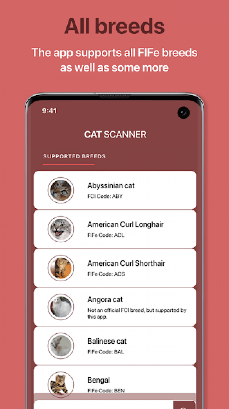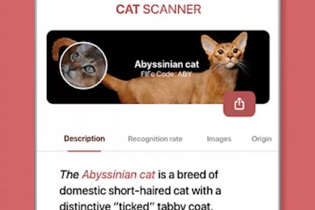 Это приложение использует преимущества искусственного интеллекта для проверки и сопоставления основных черт внешности кошек различных пород. Чтобы выполнить проверку, сфотографируйте своего питомца, а программа предоставит вам результат, после непродолжительной проверки. Вы также можете использовать готовые снимки из галереи мобильного телефона. Приятной особенностью приложения, является возможность определения не только чистокровных животных, но и смешанных пород. Информация о породе дополняется полезной информацией и интересными фактами.