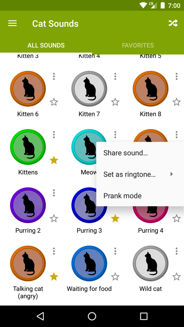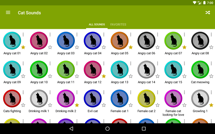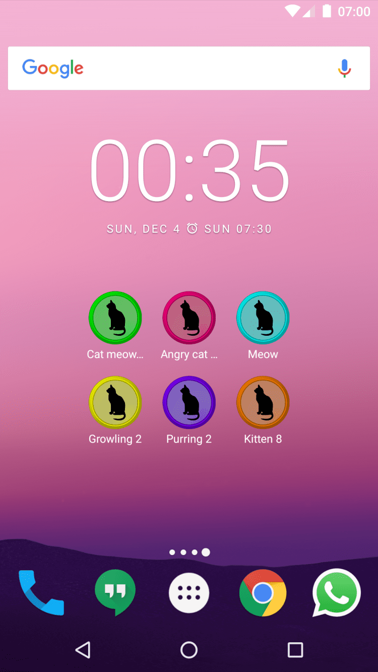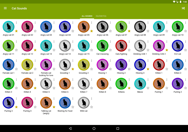 Приложение содержит 45 звуков, издаваемых кошками. Вы можете поиграть со своим котом, или просто наслаждаться этими звуками в любое время. Кроме того, вы можете установить эти звуки на уведомления о входящих звонках, сообщениях и тп.