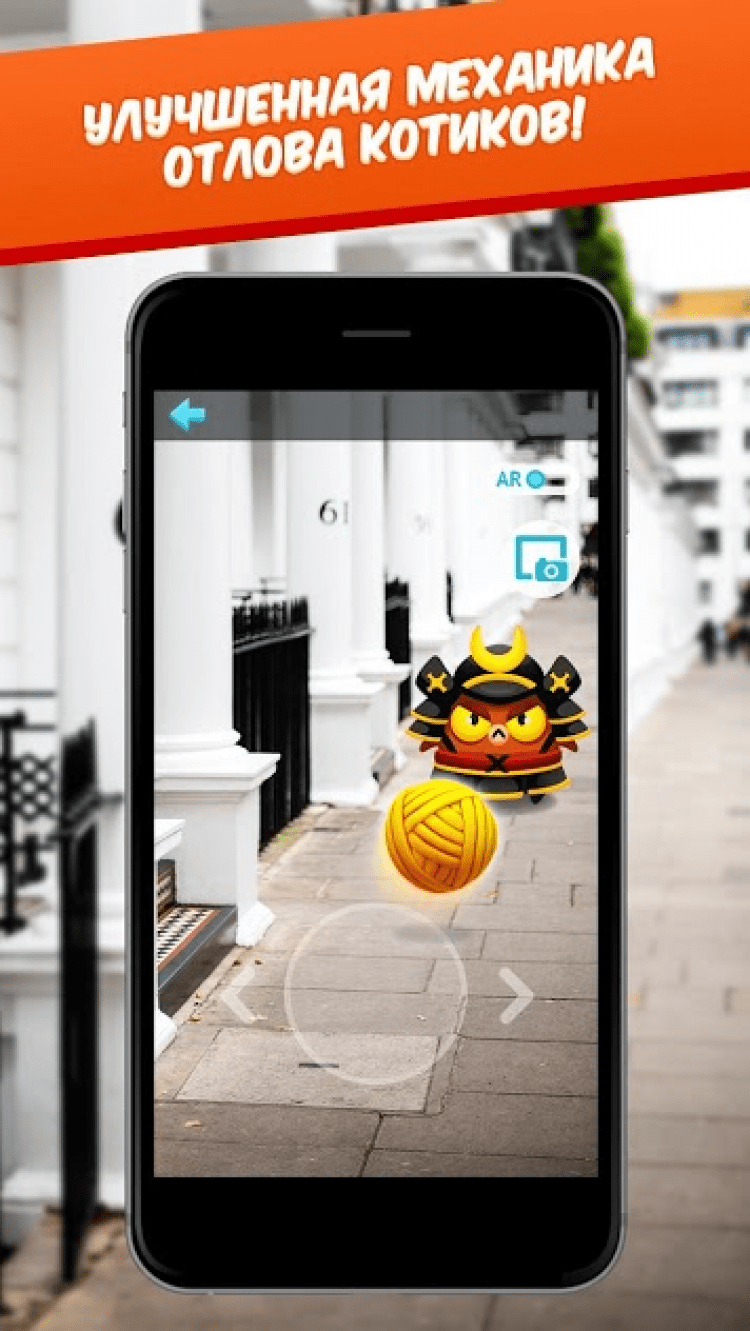 Cats GO — это увлекательная игра для тех, кто любит котов. В ней, вам предстоит ловить котиков в своём доме или в городе и собрать целую коллекцию прямо на мобильном телефоне. Во многом, приложение похоже на Pokemon GO. Доберитесь до нужной точки на карте, найдите кота и бросьте моток пряжи, чтобы поймать котика.