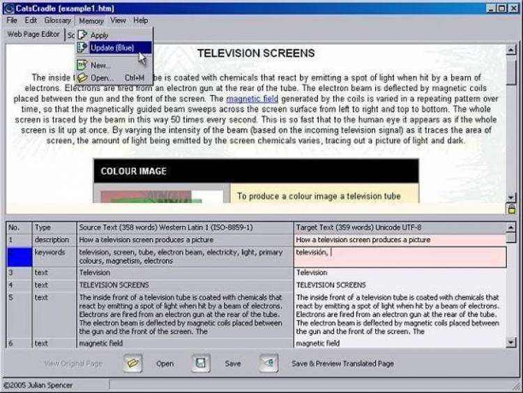 CatsCradle - это программа, предназначенная для перевода веб-страниц на различные языки. CatsCradle "выдергивает" весь текст со страницы и помещает его во встроенный редактор, в котором его можно перевести на нужный язык и отредактировать. После того, как текст готов его можно вставить обратно.