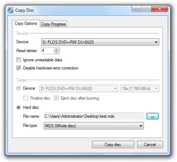 - программа позволяет клонировать информацию с одного диска на другой. Перезаписываемые носители программно стираются;