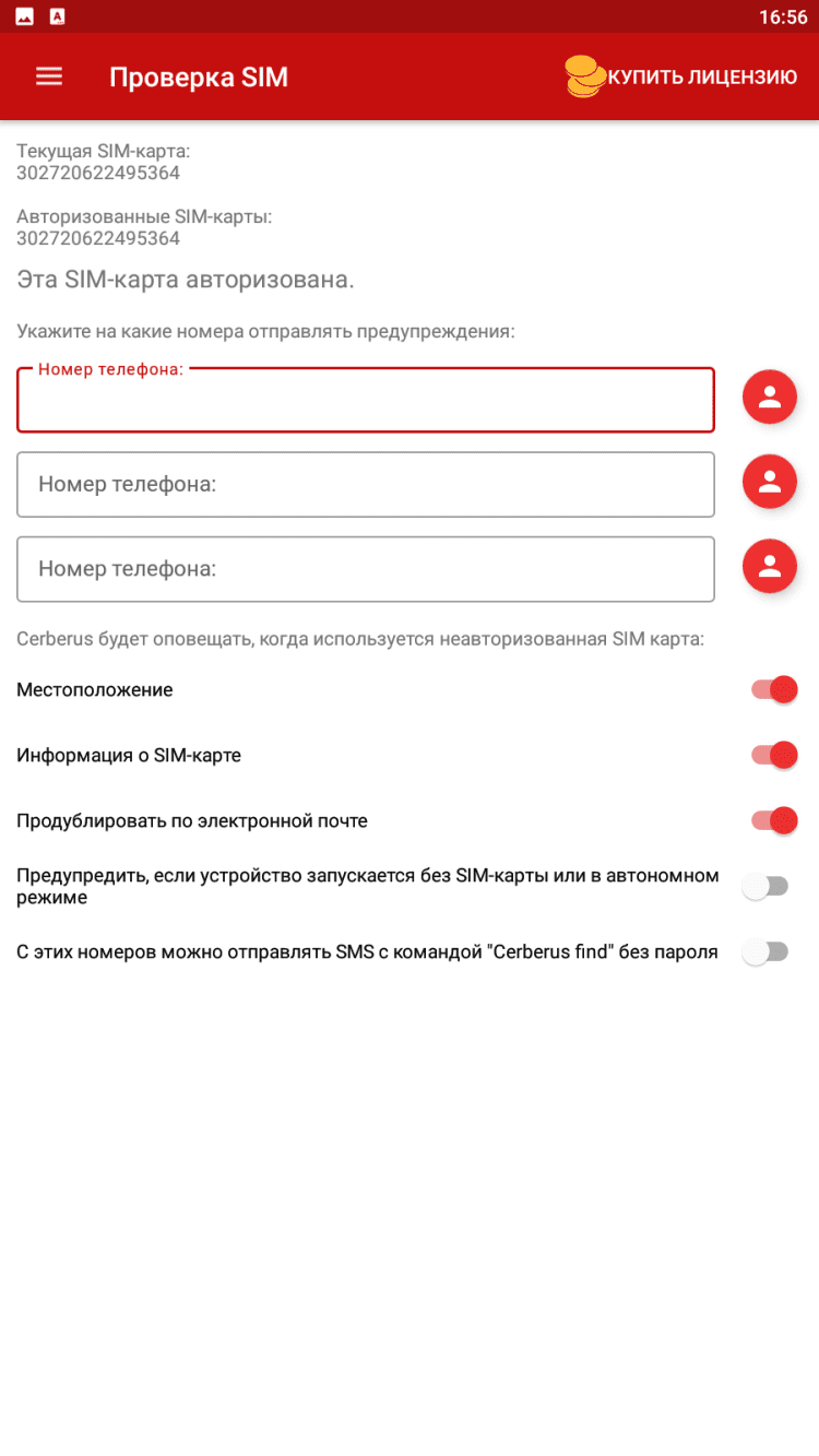 - SIM-Checker (для проверки сим-карты телефона): Вы будете автоматически получать предупреждения, если кто-то использует ваш телефон с SIM-картой несанкционированно.