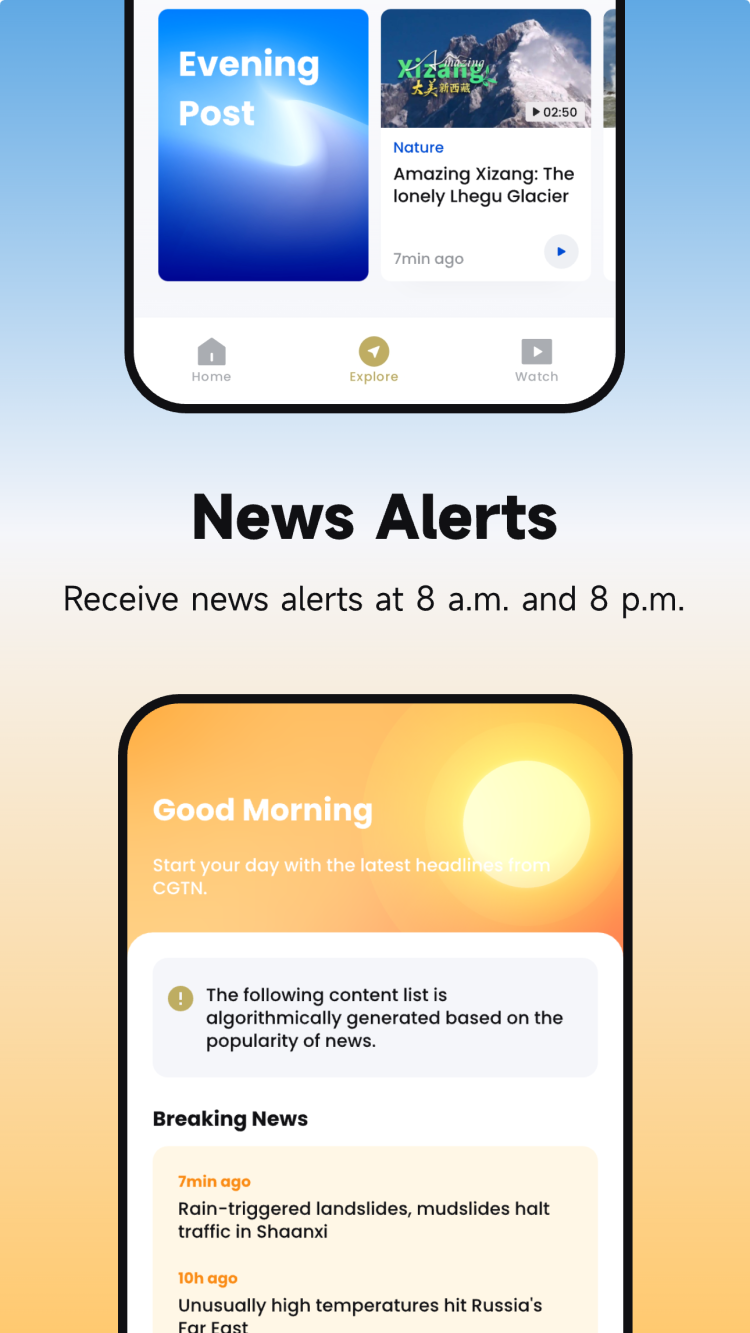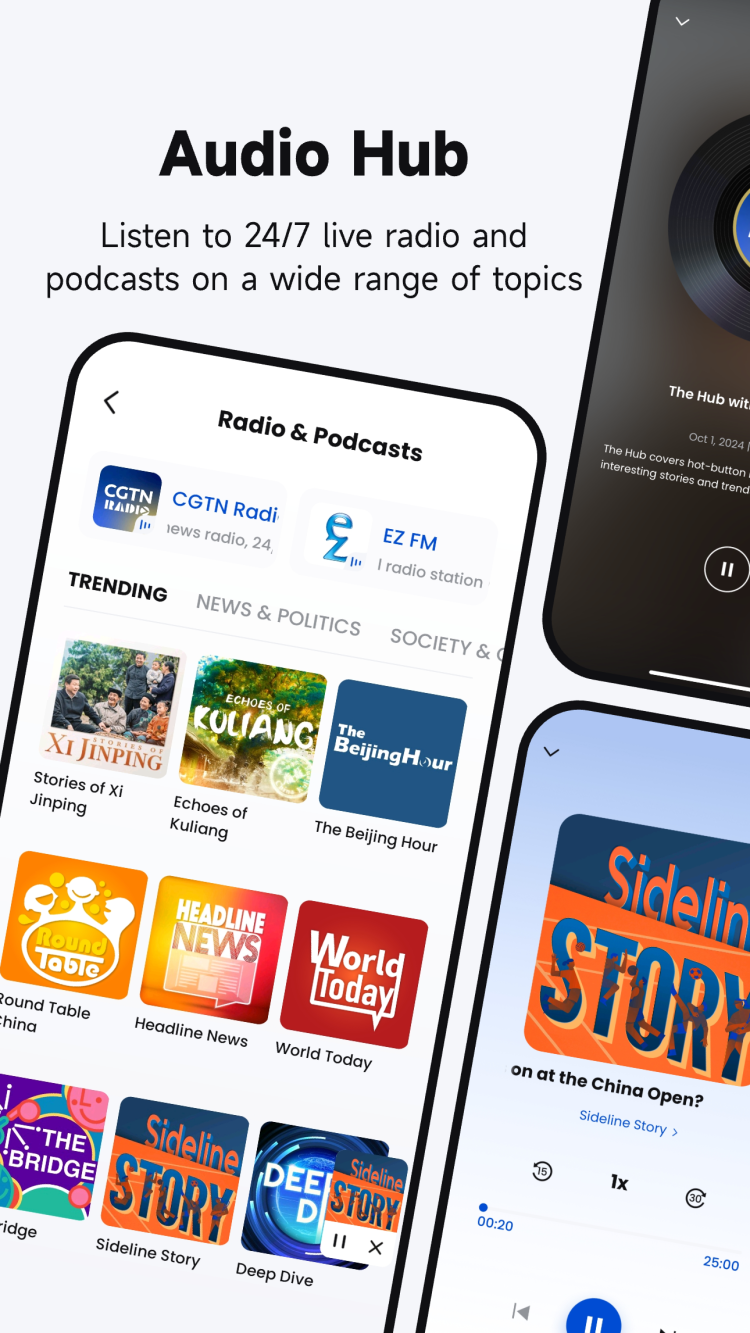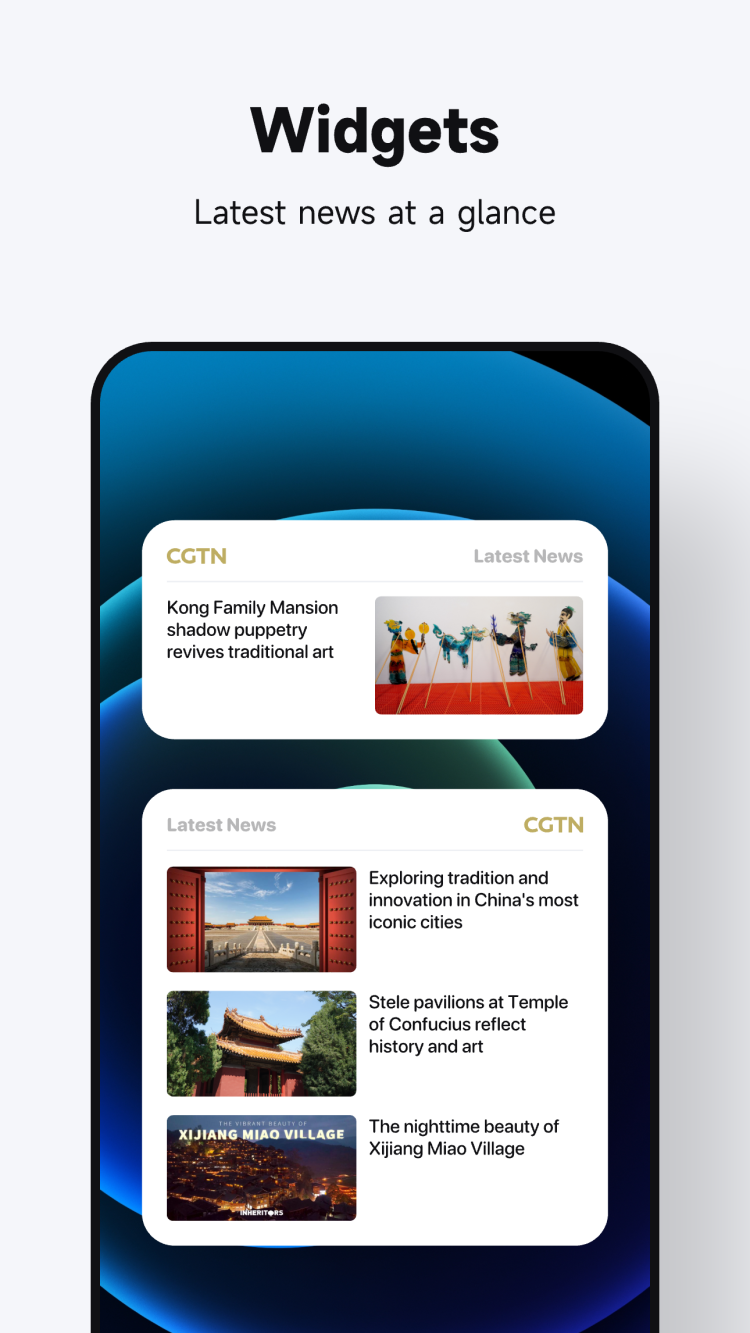 CGTN — это официальное мобильное приложение одноименного китайского телеканала. С его помощью, вы в любой момент дня и ночи сможете читать интересующие вас новости и смотреть видео репортажи на понятном вам языке, на экране смартфона.