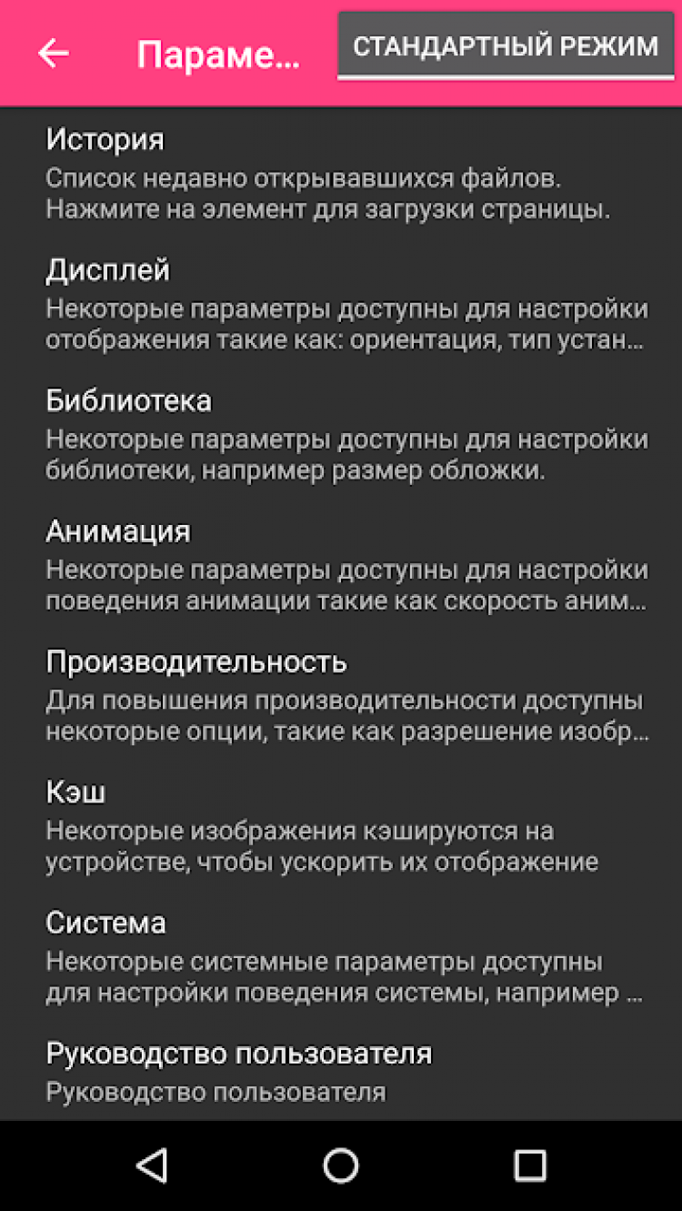 - поддержка всех основных форматов: JPG, PNG, GIF, WebP (на устройствах с Android 4.0 и выше), BMP, PDF, CBZ/ZIP, CBR/RAR, CBT/TAR, CB7/7Z, DjVu и ePUB;