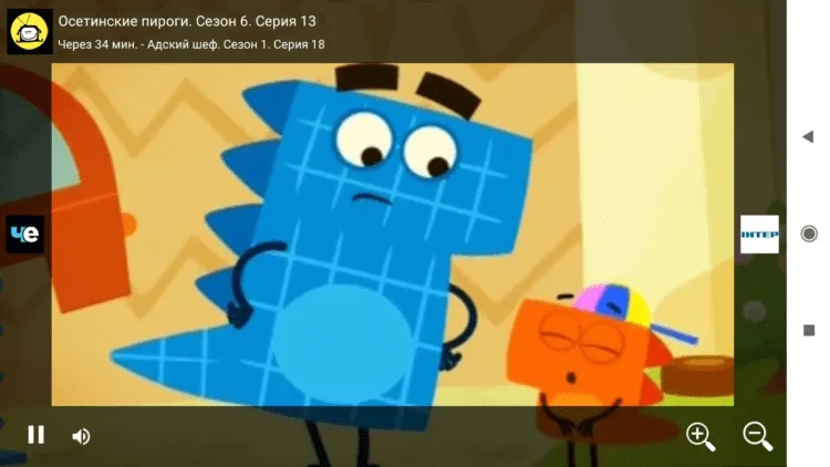 Интересно, что для некоторых каналов предусмотрена возможность активации режима HQ, в котором видео будет воспроизведено в более высоком разрешении. Это помогает улучшить качество картинки, но повышает расход трафика. А в левом верхнем углу, при однократном нажатии на экран мобильного телефона, можно увидеть название филма или сериала, который идет в данный момент, а также время до следующей передачи и её название.