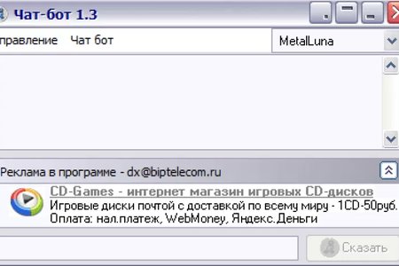 Чат-Бот - это программа искусственного интелекта. Позволяет вам общаться с ботом. К программе прилагается редактор базы данных чат-бота, так что вы всегда сможете научить вашего бота новенькому и удивить ваших друзей :0)