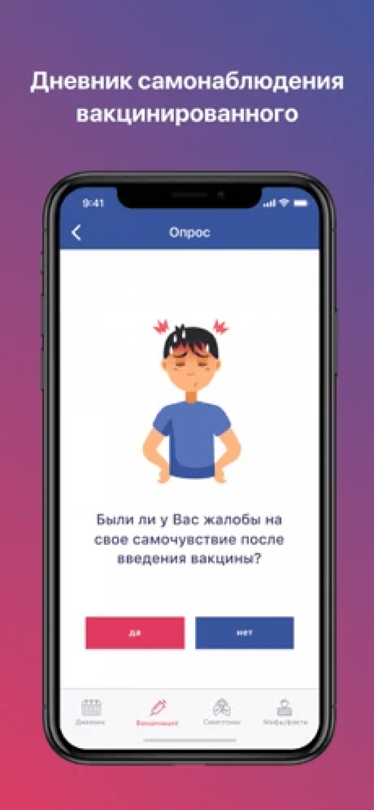 Это бесплатная программа, которая будет полезна для всех. В ней вы найдёте мифы и факты о коронавирусной инфекции, а также сможете пройти небольшой тест, чтобы оценить вероятность заражения. Для тех, кто уже болен, в программе присутствует дневник самочувствия. Его необходимо заполнять ежедневно, указывая информацию о самочувствии. В последней версии программы присутствует похожий дневник, предназначенный для тех, кто прошёл вакцинацию. Записывайте в нём своё самочувствие, для отслеживания возможных побочных эффектов вакцины.