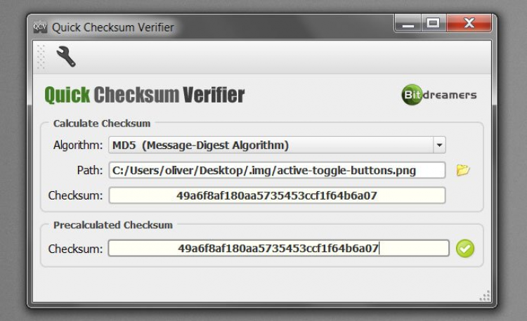 Checksum Verifier - это утилита, с помощью которой вы сможете удостовериться в целостности файла, рассчитав его контрольную сумму и сравнив ее с оригинальным значением. Она поддерживает алгоритмы MD5 и SHA-1.