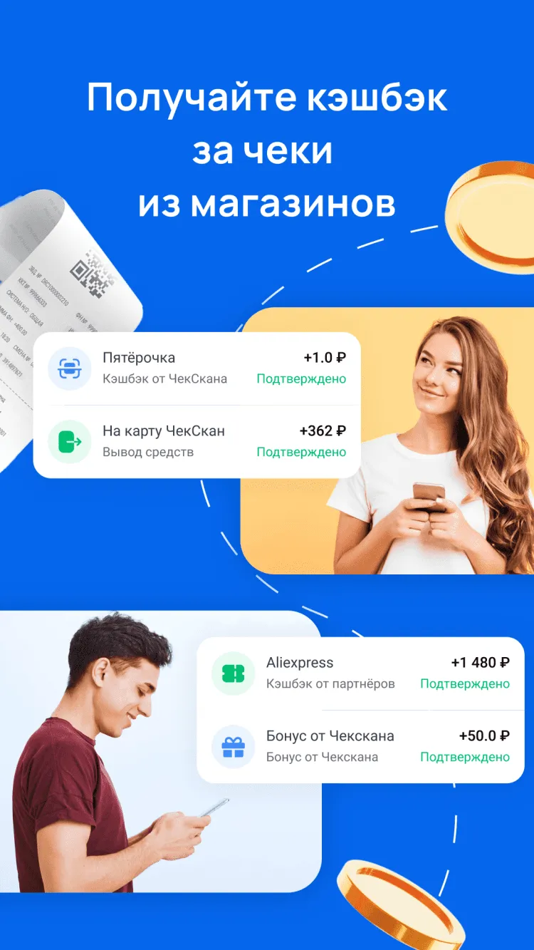 Приложение ЧекСкан поможет сэкономить и вернуть часть средств с покупок. Данное приложение предназначено для сканирования товарных чеков. С его помощью вы сможете получить информацию о товарах из чека, найти более выгодные цены, составить список покупок, а также получить полезную статистику по расходам. Кроме этого, с этим бесплатным приложением вы сможете еще и получать кэшбэк с покупок в обычных и онлайн-магазинах.
