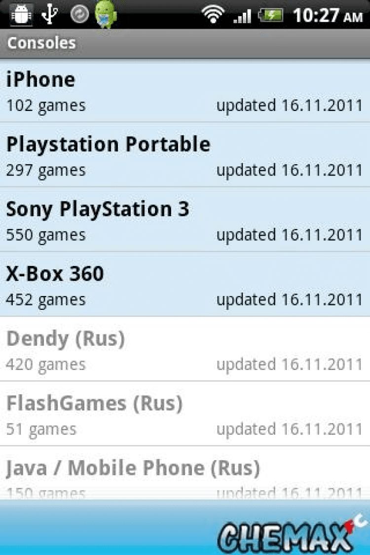 CheMax FC — это огромная база чит кодов для консольных (приставочных) игр. 38 типов игровых консолей в текущей версии, более 11000 игр. Удобна и проста в использовании, online обновления.