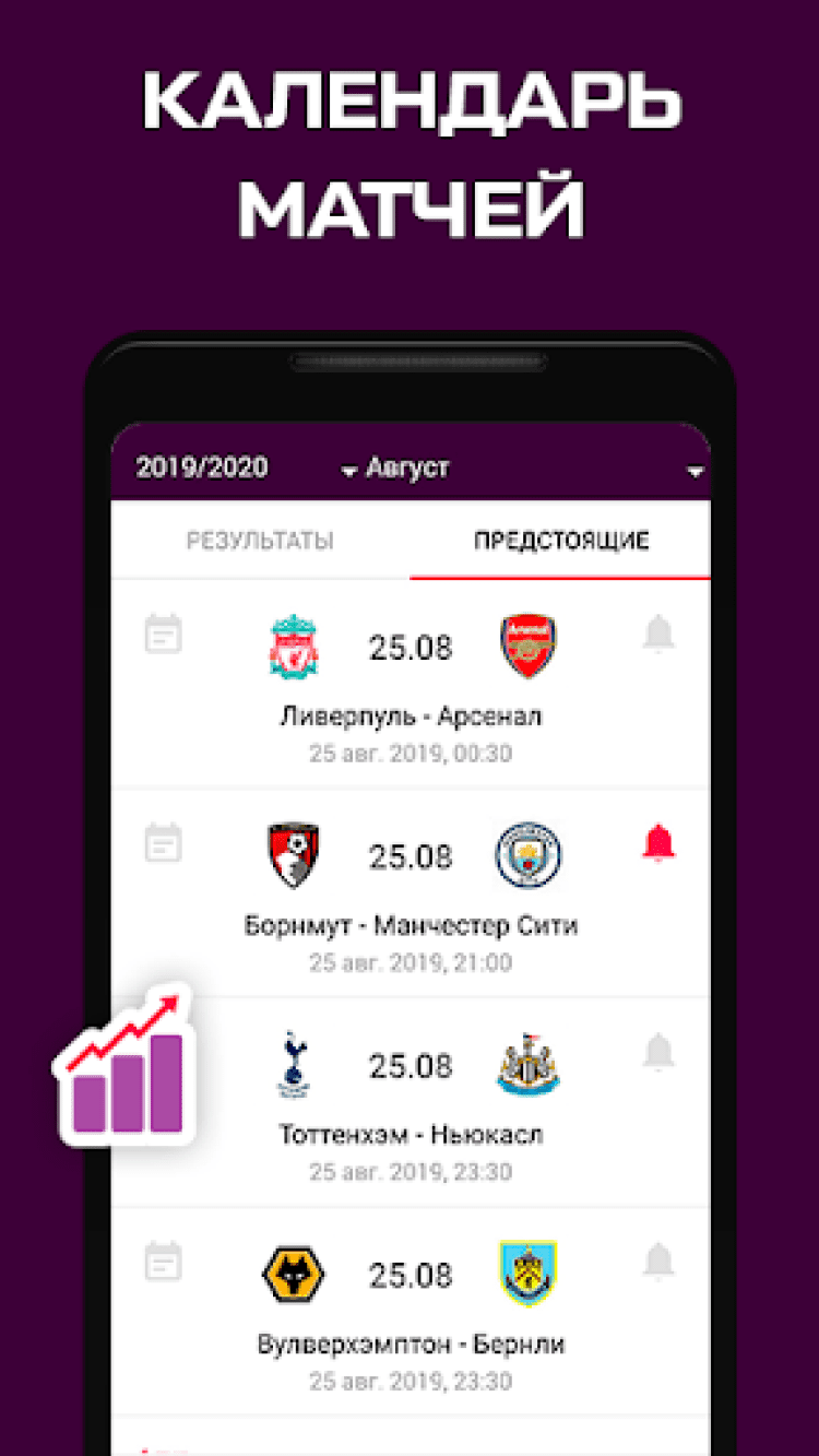 Результаты и календарь матчей, текстовые трансляции, новости и видео - все о вашем любимом турнире, оперативно и подробно. Следить за АПЛ еще никогда не было настолько удобно.