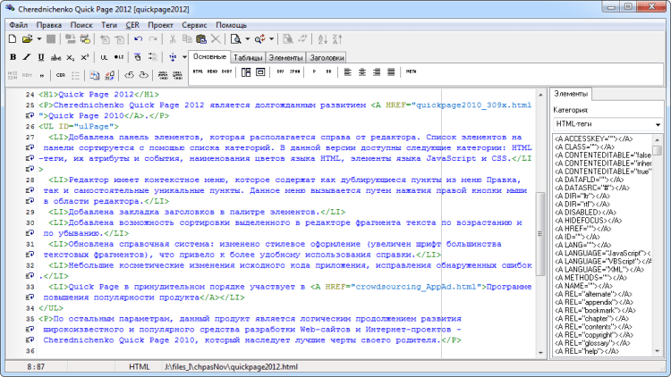 Cherednichenko Quick Page 2012 - это широко-известный продукт, который сочетает в себе мощь и простоту, что значительным образом способствует дальнейшему распространению продукта. Quick Page легок в освоении. Широкий набор функций и возможностей значительным образом сокращают и упрощают процесс разработки любого по сложности и объему сайта.