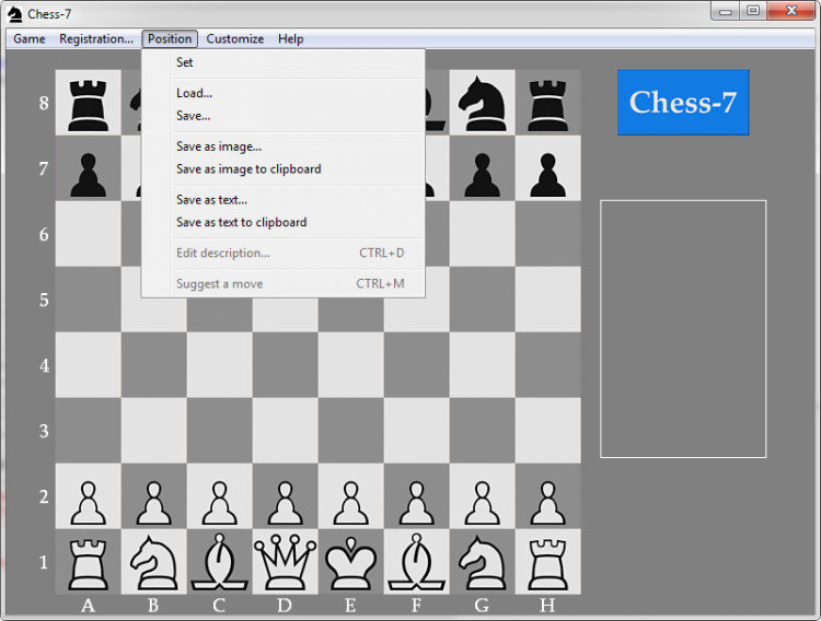 Chess-7 - это игра для компьютеров под управлением ОС Windows, в которую вы сможете играть против ИИ или живого оппонента, при этом, неважно, сидит он рядом с вами за одним компьютером, или на другом конце земного шара. Даже если вы не умеете играть в шахматы, эта программа поможет вам научится, играя против компьютера на подходящем для вас уровне сложности. А когда будете уверены в своих навыках, вы сможете сыграть с настоящим соперником сидя за одним компьютером, или через Интернет.
