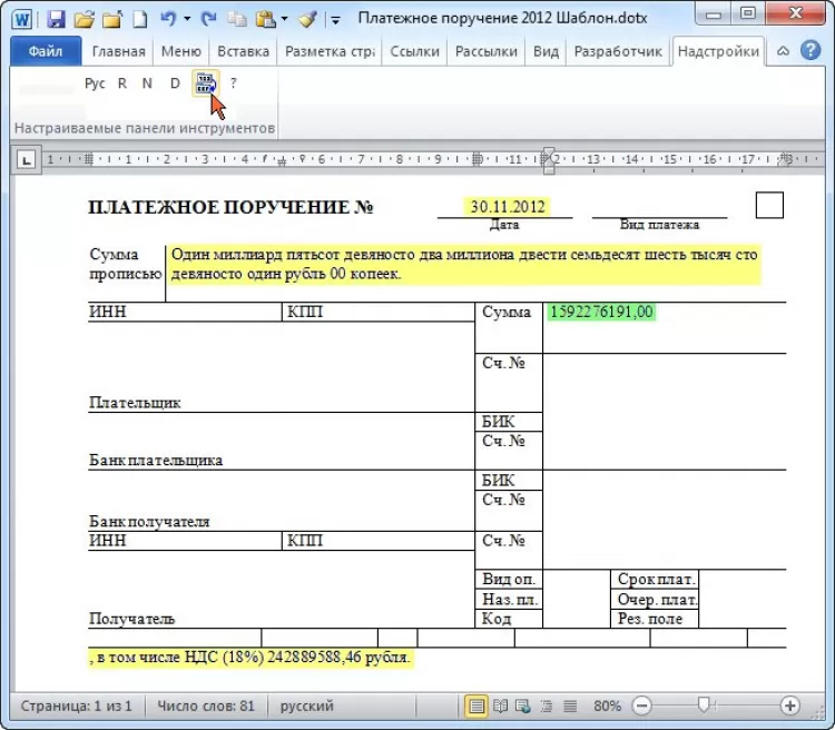 Число прописью / Cумма прописью - Форпост - это программа предназначена для совместной работы с редактором MS Word и служит для автоматического формирования записи словами денежных сумм в различной валюте, количественных величин с единицей измерения и календарных дат по их числовой записи.