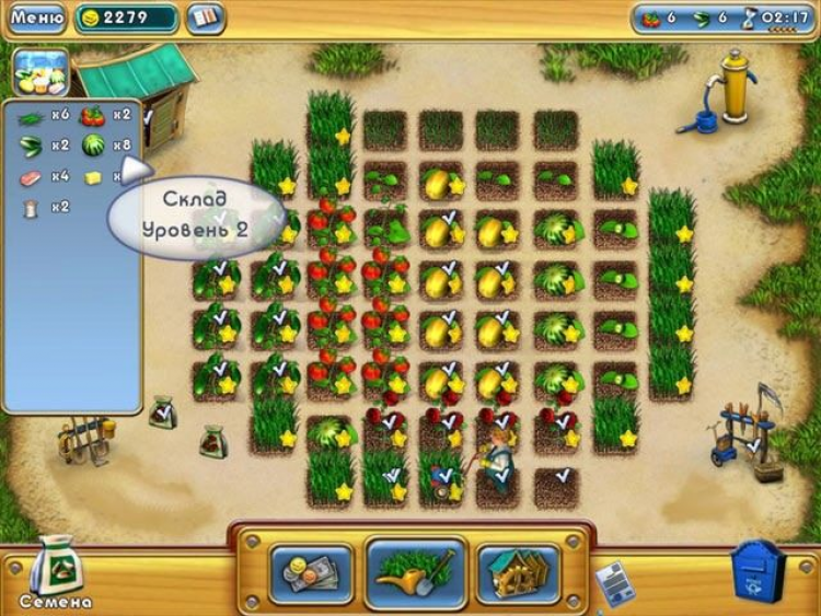 Вооружившись этим арсеналом, вы сможете более эффективно возделывать землю и выращивать самые разные растения: не только обычные огурцы и помидоры, но и прекрасные розы, арбузы или даже ананасы. Соседям подобная экзотика не по вкусу, поэтому такую сельхозпродукцию лучше отправлять на рынок. Восточная мудрость гласит: базар цену знает поэтому вам придется изрядно понервничать, выбирая удачный момент для продажи товара по максимальной цене. Постепенно вашей продукцией станут интересоваться магазины, рестораны и закусочные.