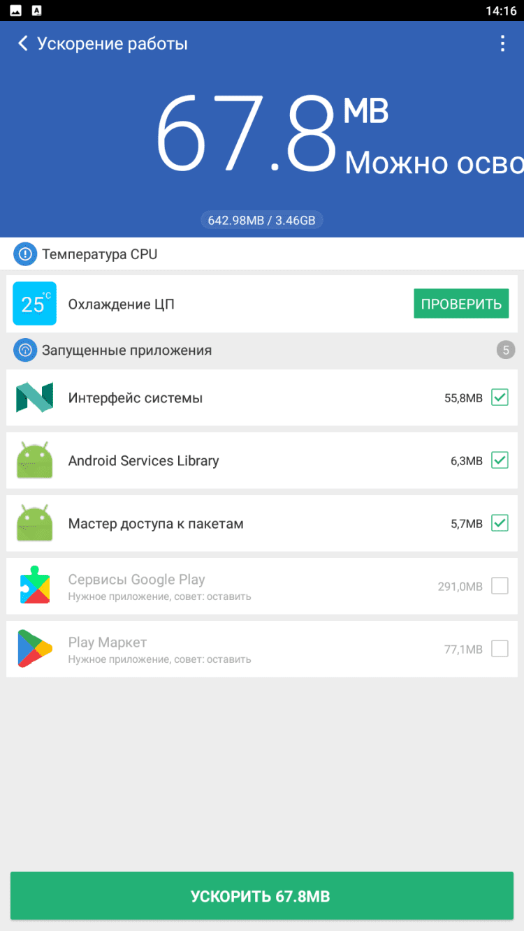 - расширенная чистка в режиме «Ускорение»;