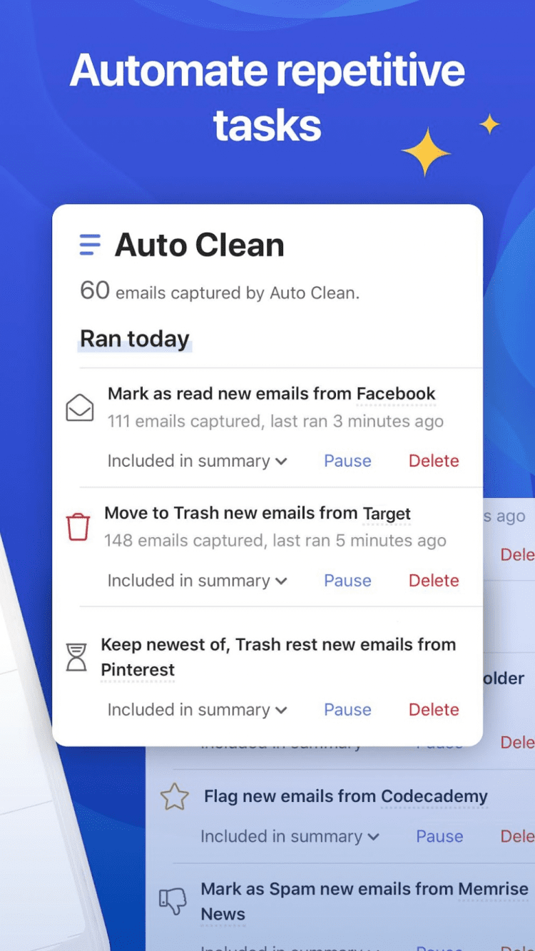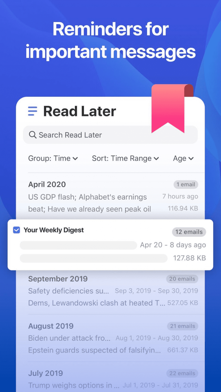 CleanEmail чрезвычайно прост в использовании благодаря своему современному пользовательскому интерфейсу, который соответствует последним трендам удобства использования. Не прийдется читать длинные, скучные руководства, чтобы выяснить, как использовать функции, которые не требуют каких-либо пояснений. CleanEmail, помимо того, что он доступен даже для людей, которые не являются технически подкованными, также достаточно безопасен. Благодаря 128-битовому шифрованию, предоставляемому Comodo и первоклассной поддержке клиентов, ваши личные данные максимально защищены. CleanEmail работает со всеми основными веб-браузерами и поддерживает все популярные почтовые службы - Gmail, iCloud, Yahoo, Fastmail, Outlook, Hotmail, Office365, AOL или любую службу IMAP.