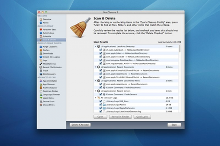 MacCleanse - утилита для комплексной очистки кэша, удаления лог-файлов и очистки системы от другого мусора. MacCleanse в считанные минуты проделает все операции, на которые бы потребовалось несколько часов ручной работы. Она умеет удалять приложения и неиспользуемые языковые пакеты, очищать кэш, удалять лог файлы и cookies, стирать историю посещенных веб-страниц, находить и удалять старые и неиспользуемые файлы и многое другое.