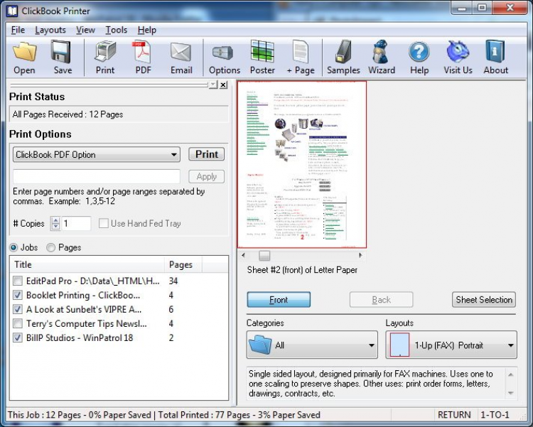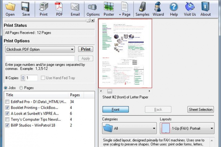 ClickBook MMX - это программа для печати документов в формате буклета, постера, календаря, баннера, брошюры, адресной книги, визитной карточки и др. Поддерживает любые струйные и лазерные принтеры. Имеет уже готовые шаблоны, а так же редактор для создание собственных заготовок.