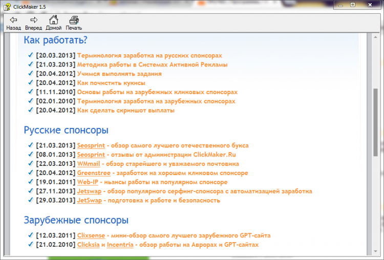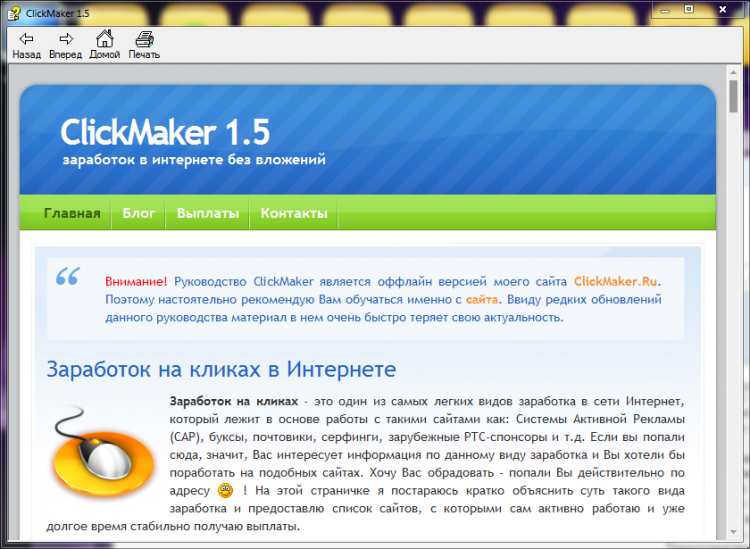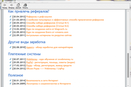 ClickMaker - это полезная программа. В наше время у каждого дома есть компьютер с доступом в Интернет. И, наверняка, каждый задумывался о том, что с помощью этой сети можно не только развлекаться и находить необходимые материалы, но и зарабатывать. Однако новичкам сложно сориентироваться в огромном пространстве и массовости предложений по заработку в Интернете.