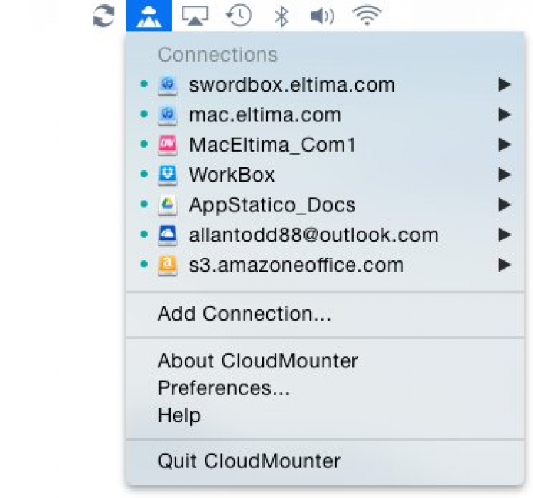 CloudMounter для Mac Облачный клиент нового поколения. Он позволяет Вам монтировать облачные сервисы и веб сервера, как локальные диски к Вашему Mac. Благодаря этому, Вы можете значительно увеличить свободное место вашего компьютера, до практически безлимитного. Единственное условие – активное Интернет соединение.