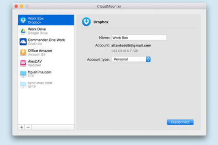 Программа представляет собой менеджер подключений с отдельной кнопкой для каждого поддерживаемого сервиса. Просто выберете нужный, введите свои данные для входа и сервис появится непосредственно в вашем Mac Finder как отдельный диск. Вы сможете копировать туда файлы, скачивать, создавать новые и удалять старые, как если бы это была просто папка на вашем компьютере.