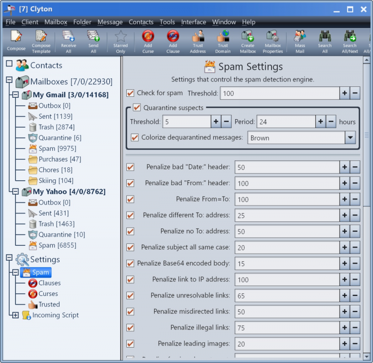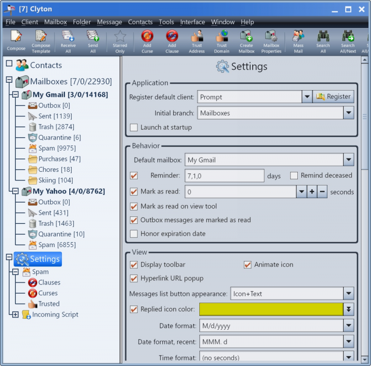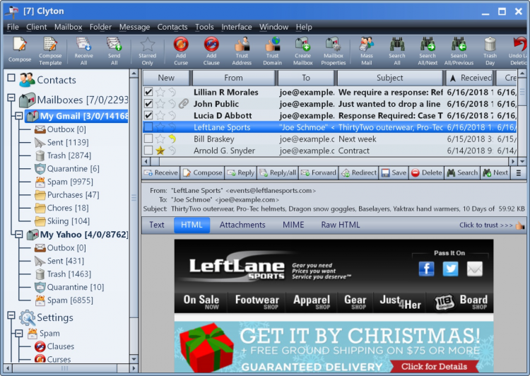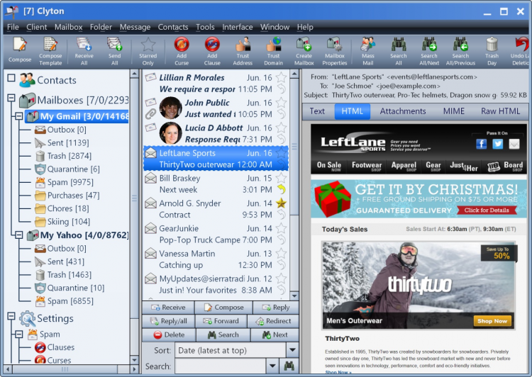 Clyton - это полноценный почтовый клиент для ОС Windows с улучшенной защитой и продвинутой системой фильтрации спама.
