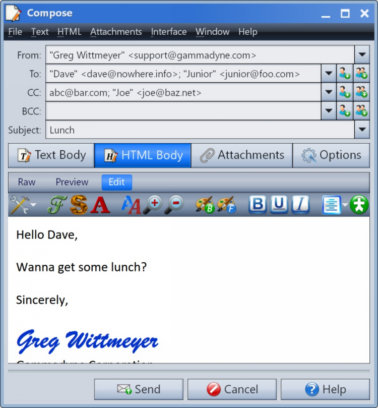 - HTML-редактор для составления писем