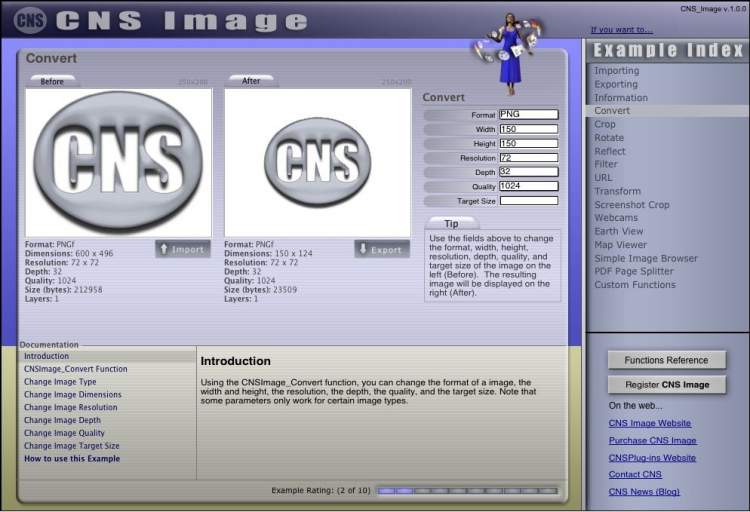 CNS Image Плагин для FileMaker, позволяющий импортировать, экспортировать и править изображения. Вы сможете изменить расположение изображения (альбомное или книжное), обрезать его, установить зеркальное отображение, наложить различные эффекты и многое другое.