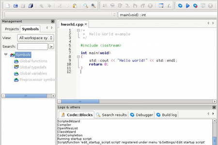 Code::Blocks - свободная кроссплатформенная среда разработки. Code::Blocks написана на С++ и использует библиотеку wxWidgets. Имея открытую архитектуру, может масштабироваться за счёт подключаемых модулей. Поддерживает языки программирования С, С++, D (с ограничениями).