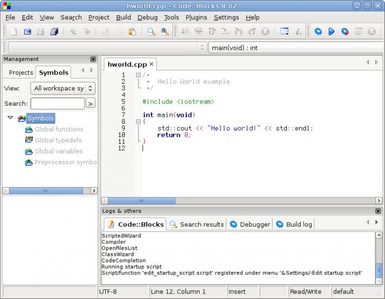 Свободная кроссплатформенная среда разработки. Code::Blocks написана на С++ и использует библиотеку wxWidgets. Имея открытую архитектуру, может масштабироваться за счёт подключаемых модулей. Поддерживает языки программирования С, С++, D (с ограничениями).