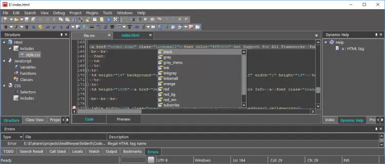 CodeLobster IDE для Linux Это удобный бесплатный PHP, HTML, CSS, JavaScript редактор (IDE) с поддержкой Drupal CMS, Joomla CMS, Magento CMS, Smarty, Twig, WordPress, библиотеки JQuery и фреймворков: CodeIgniter, CakePHP, Symfony, Yii, AngularJS, BackboneJS, MeteorJS, Laravel, Phalcon. Он включает в себя РНР дебаггер, динамическую справку, продвинутый автокомплит для всех языков, Class View для комфортной работы со смешанным кодом, а также FTP/SFTP клиент. В поддерживаемых фреймворках работает специальный помощник для инсталляции, автодополнения для функций и методов, тултипы с описаниями, а также помощь по API. Все это делает данный редактор полноценной IDE.