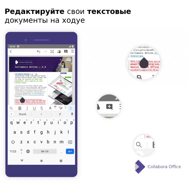 Collabora Office — это приложение с открытым исходным кодом, которое избавит вас от необходимости находиться возле компьютера, чтобы иметь возможность полноценно работать с документами.