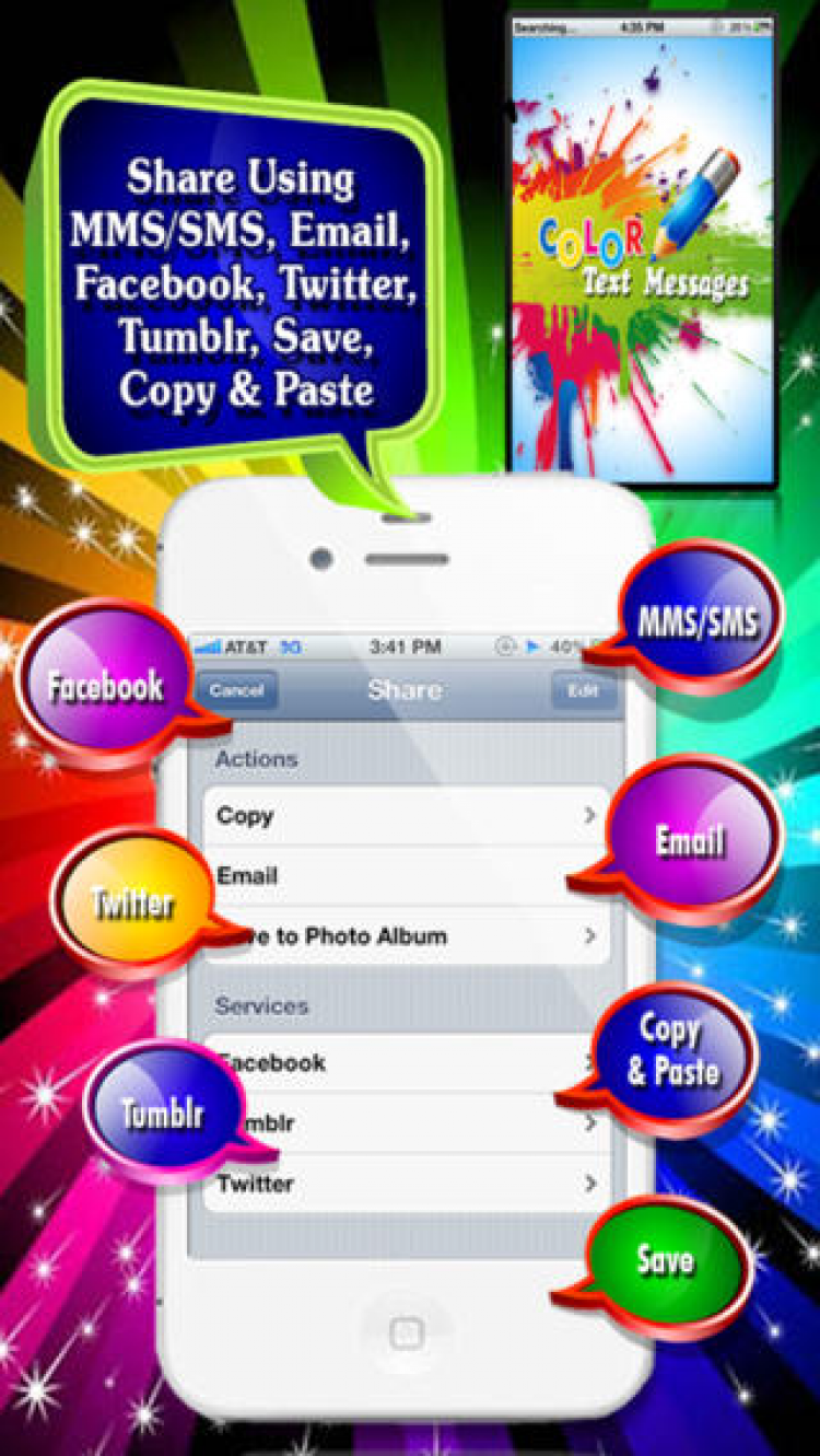Color Text Messages Lite С помощью этого приложения вы сможете сделать свои сообщения яркими и оригинальными!