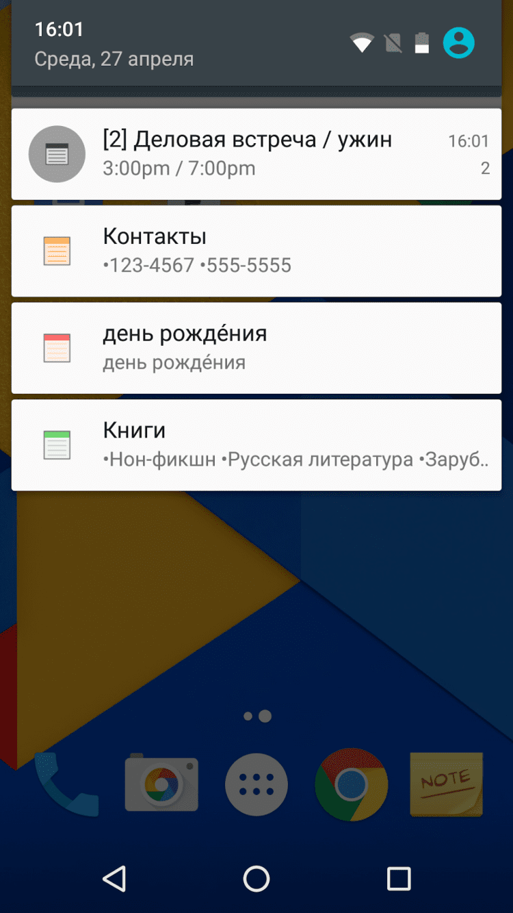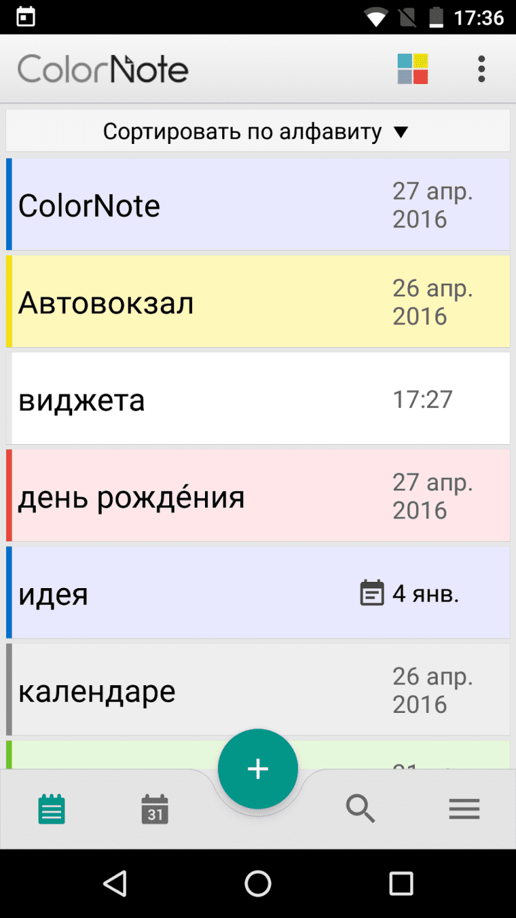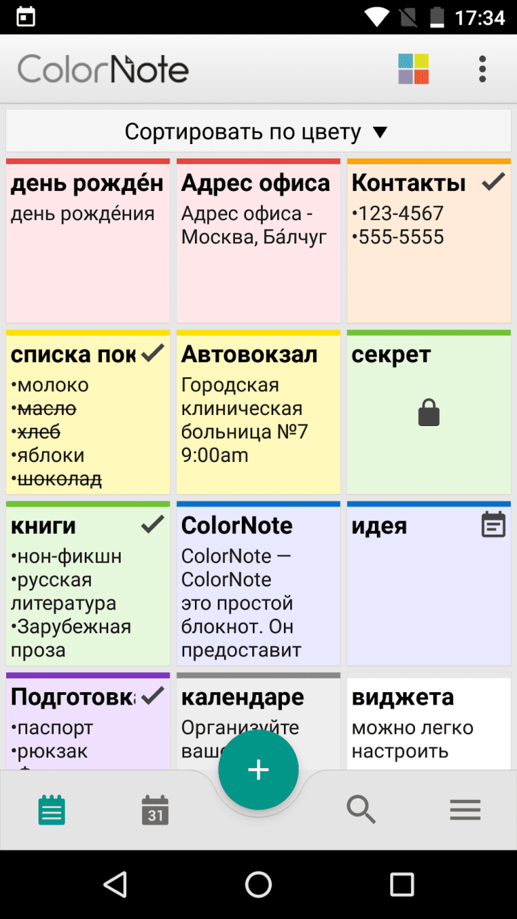 ColorNote — ColorNote это простой блокнот. Он предоставит возможность легкого и простого пользования блокнотом при написании заметок, напоминаний, email, сообщений, перечней дел и покупок. С ColorNote создание заметок проще, чем с любыми другими блокнотами и органайзерами.