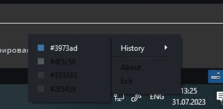 Программа ColorPicker работает следующим образом: после запуска она размещается в системном трее, где пользователь может легко получить доступ к ее функционалу. Пользователь может перемещать курсор мыши по экрану и видеть текущий выбранный цвет в реальном времени. Левый клик мыши выбирает нужный цвет, и он копируется в буфер обмена.
