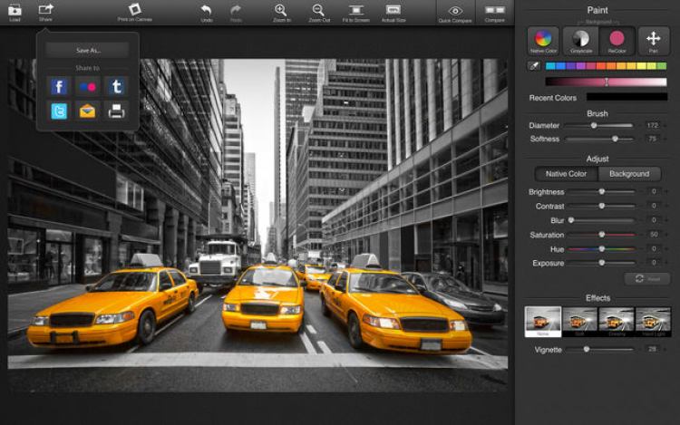 К приятным особенностям программы ColorStrokes для macOS можно отнести поддержку Retina дисплеев, а также интеграцию с iPhoto и Aperture, что позволит вам с лёгкостью экспортировать свои творения в библиотеки. Кстати, поделиться отредактированными изображениями с родными и близкими вы сможете и благодаря возможности поделиться изображениями через Facebook, Tumblr, Twitter, Flickr, либо по электронной почте.