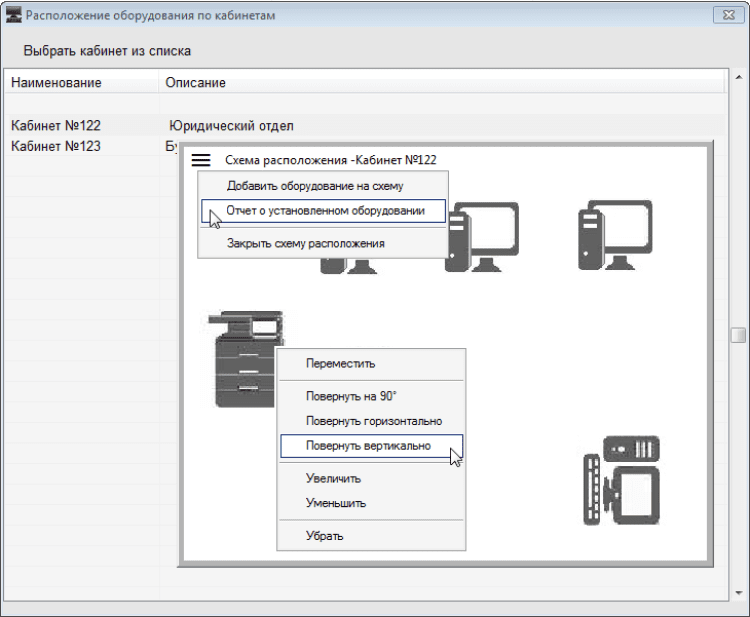 - Учет и отслеживание расположения компьютерной техники в помещении