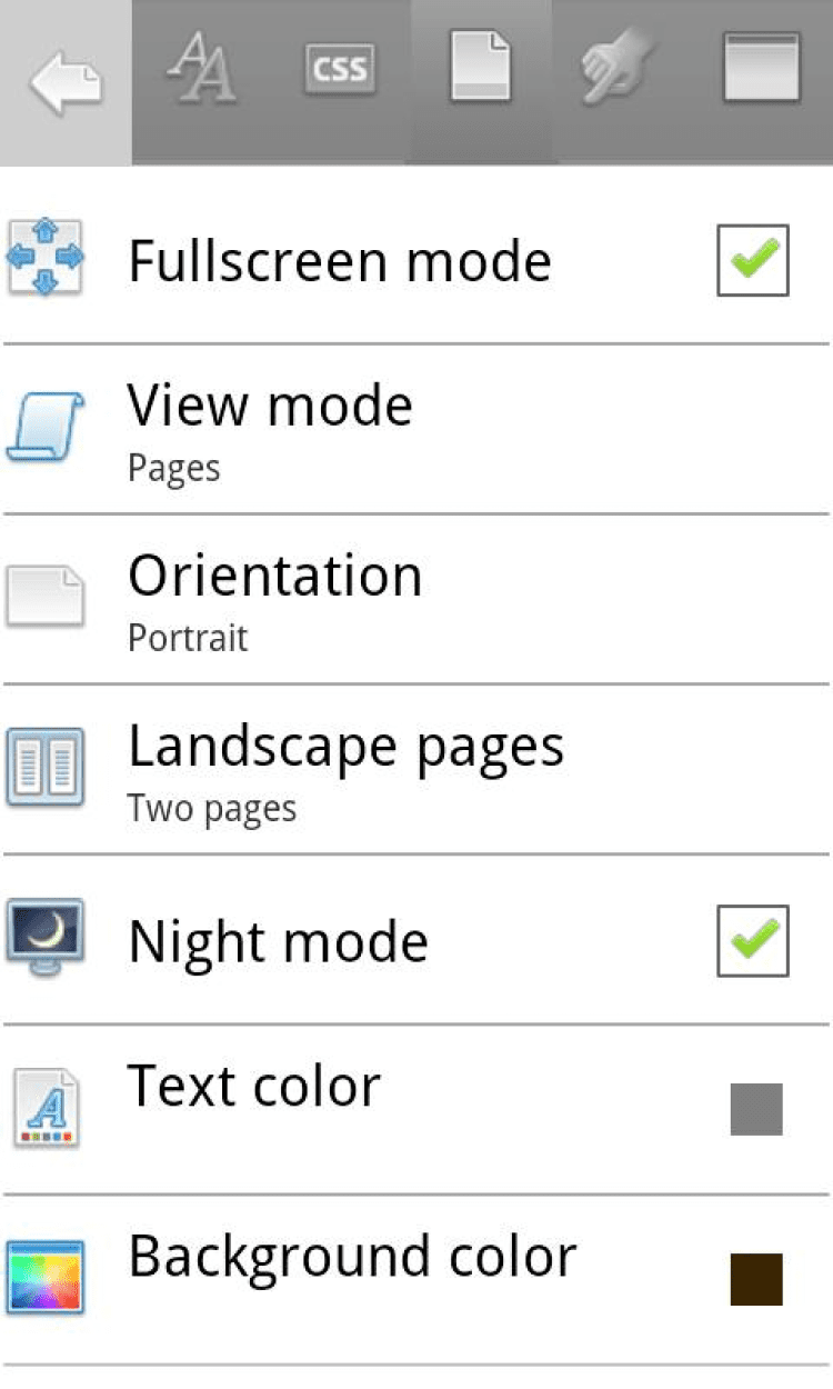 - чтение в виде книжных страниц или свитка;
