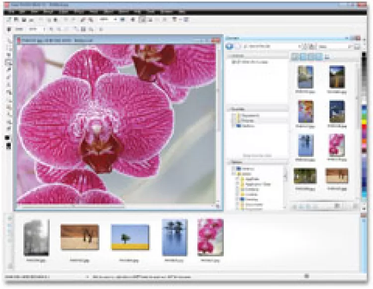 - Встроенный инструмент поиска Corel CONNECT для просмотра и поиска материалов, группировки их по типу и проекту.