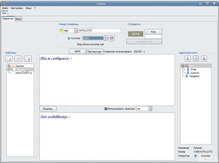 Coyote Программа с открытым исходным кодом для бесплатной отправки SMS на мобильные телефоны многих операторов: