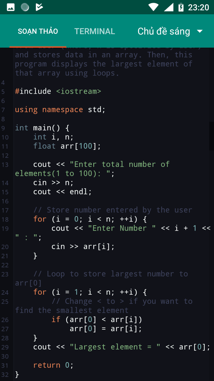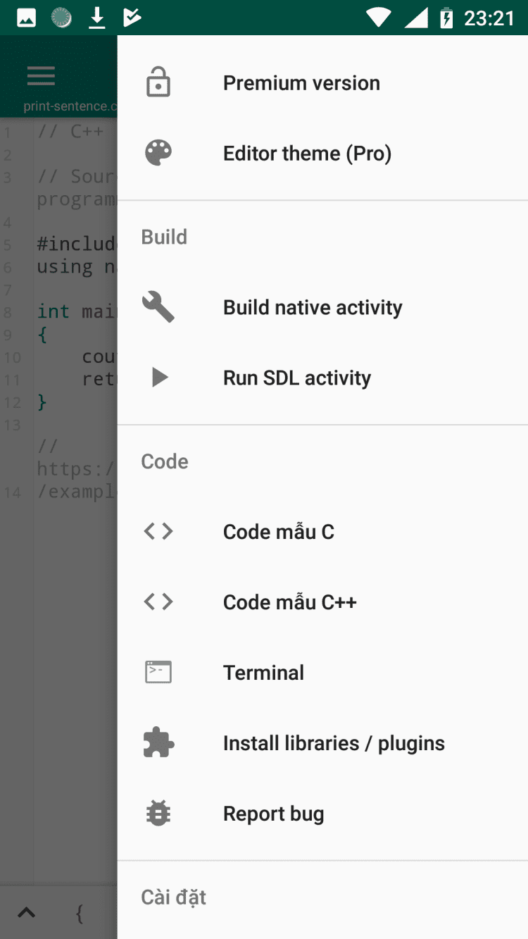 Перед вами удобная интегрированная среда разработки для C/C++. Установите её на мобильный телефон или планшет на Android, чтобы иметь возможность писать код в любом месте и в любое время. При этом, благодаря наличию встроенного оффлайн-компилятора, вам даже не потребуется доступ в Интернет. Последняя версия приложения позволяет создавать исполняемые файлы и экспортировать ваши собственные программы для запуска на других устройствах.