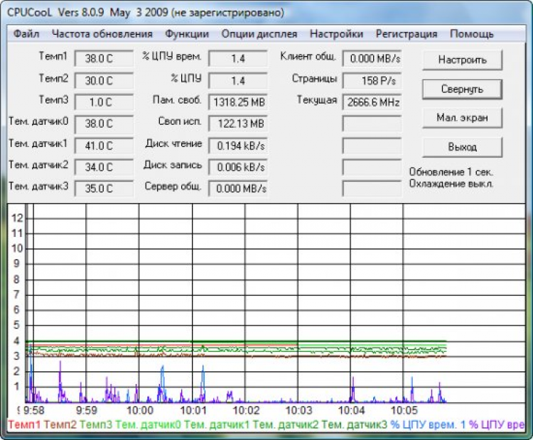 CPUCooL Утилита для мониторинга температуры ЦП/чипсета и объема свободной памяти. Так же ее можно использовать и для оптимизации работы ЦП и использования оперативной памяти. Умеет работать со S.M.A.R.T. данными.