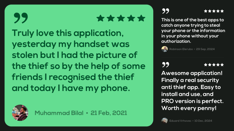 Важно, что вы можете скачать CrookCatcher для Android и пользоваться основными функциями программы совершенно бесплатно. Но для премиум-подписчиков доступны некоторые дополнительные возможности. Например, платная версия программы может записывать видео при вводе неверного пароля, а также получать изображения с основной камеры смартфона, чтобы определить его местонахождение. Полученные данные будут загружены на Google Диск, чтобы вы могли получить к ним доступ с любого устройства.