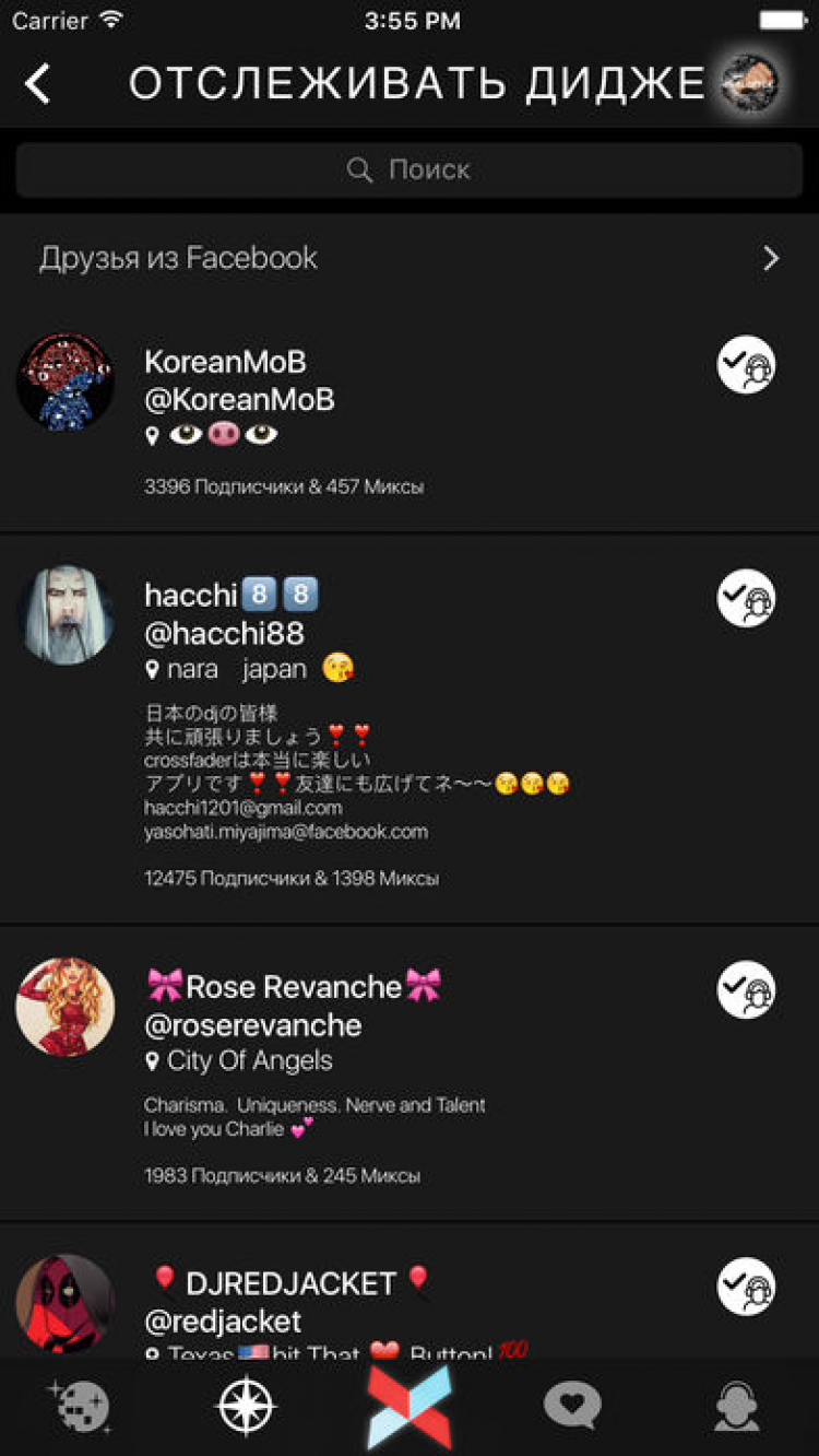 Crossfader Это приложение позволит вам миксовать музыку, просто наклоняя свое мобильное устройство. В приложение Crossfader вошел бесплатный и постоянно обновляющийся набор песен, который позволит вам миксовать классические мелодии с популярной электронной музыкой, сохранять свои сведения и делиться ими на мировых микс-чартах.