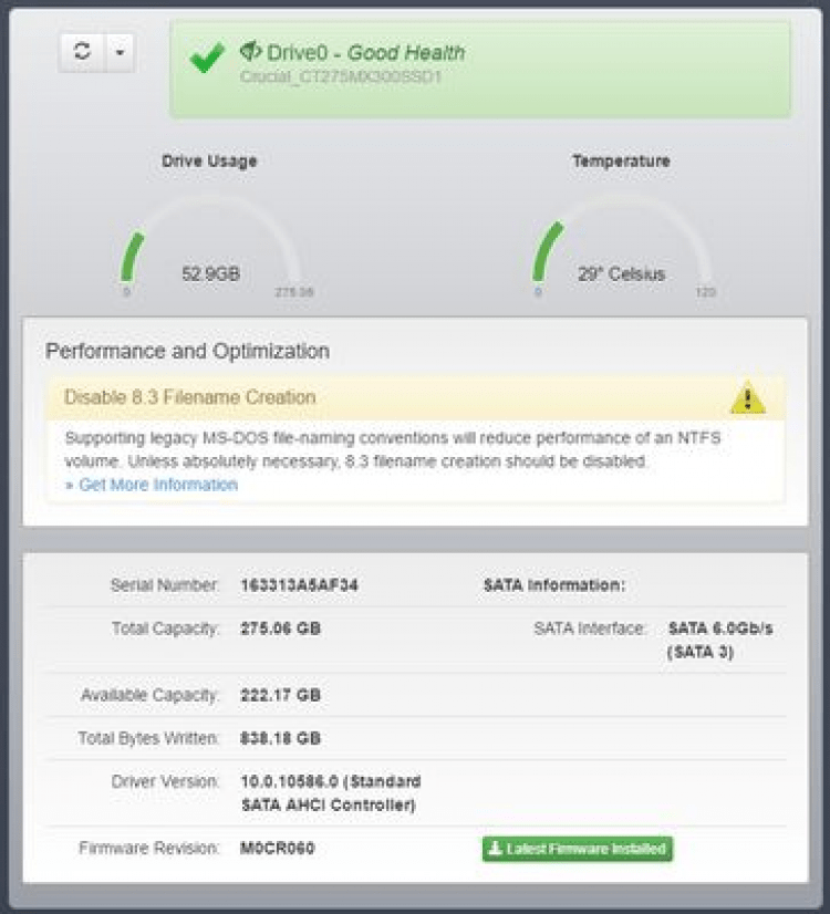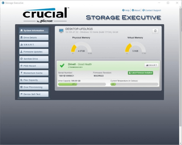 Crucial Storage Executive работает в ОС Windows 7, 8.1 и 10 и поддерживает диски серии Crucial MX-series, BX-series, M550, и M500.